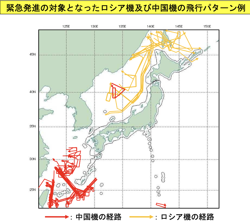 2025年4月〜9月の上半期での緊急発進回数は265回、前年同期(358回)より減少している。中国機が75 %、ロシア機が22%。