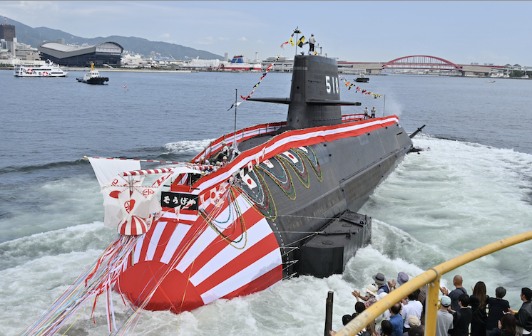 図23:(川崎重工)新型潜水艦「そうげい (SS-518)の進水式。川崎重工では、戦後建造した潜水艦の32番目の艦が「そうげい」となる。