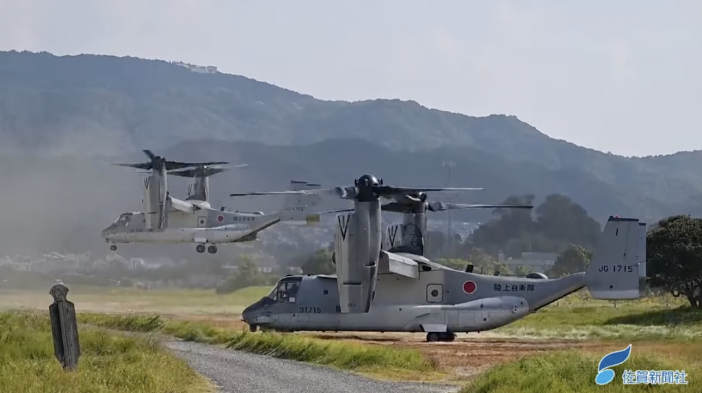 離島奪還訓練には佐賀基地からV-22オスプレイ4機が出動、佐世保相浦駐屯地から水陸機動団兵員100名を2機に乗せ、100 km離れた長崎県の離島、福江島空港へ輸送、上陸訓練を行った。