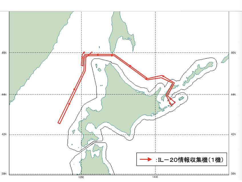 10月25日午後、ロシア軍情報収集機Il=20がシベリアから飛来、ICBM探知用の長距離レーダーが配備してある京都府経ヶ崎沖に接近したのち反転してシベリアに向け立ち去った。