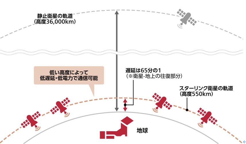 「スターリンク」は、高度550 kmの地球低軌道に5,000基以上の通信衛星を展開する世界最大の衛星通信網である。2018年からテストフライトが始まり、2020年には北米とヨーロッパで運用を開始、2023年夏には日本全域がサービス提供地域となった。