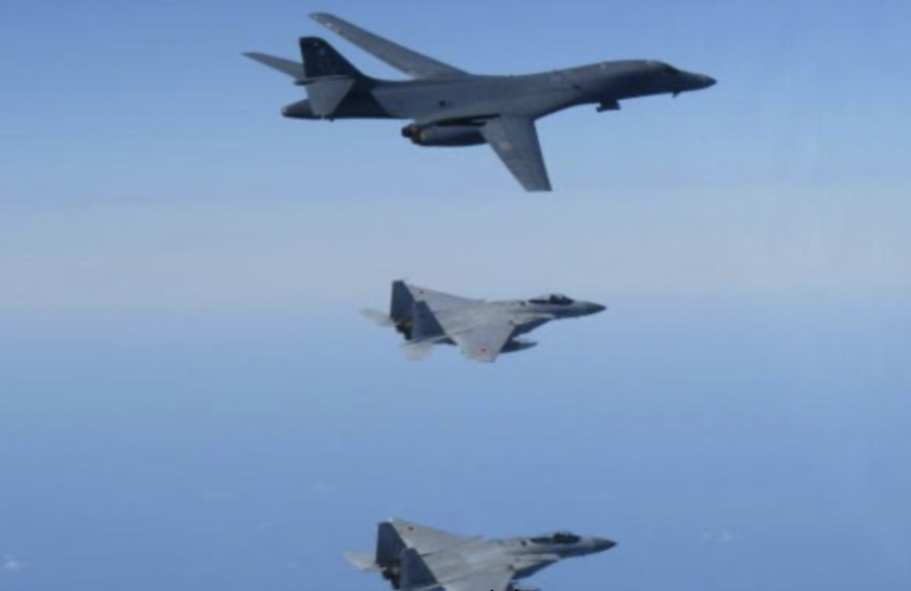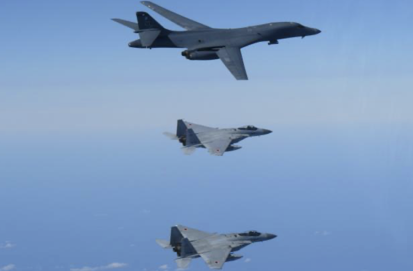 11月15日、日本海上空で航空自衛隊F-15戦闘機と同F-2戦闘機は米空軍B-1B爆撃機を中心に共同訓練を行なった。