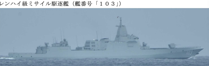 11月11日 早朝に中国海軍レンハイ級ミサイル駆逐艦(103)、同日午後にジャンカイII級フリゲート(547)およびフチ級補給艦(902)、がそれぞれ東シナ海から大隈海峡を通過太平洋に進出した。