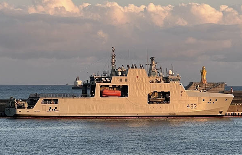 カナダ海軍哨戒艦「マックス・バーネイズ (Max Bernays)」は、2024年4月就役の新鋭艦で「ハリー・デウオルフ」級の3番艦。満載排水量6,660 ton、長さ103.6 m、幅19 m、最大速力17 kts。哨戒艦だが海上自衛隊の「さくら」型(長さ95m、基準排水量1900 tonより格段に大きい。同艦は単なる哨戒艦ではなく「極地哨戒艦 (AOPV= Arctic Patrol Vessel)」で、北極海での監視活動ができるように作られている。すなわち氷海でも氷を割りながら速度3 ktsで航行できる。艦尾には20 ton級と8 ton級クレーンを装備し車輌などの出し入れができる。さらにCH-148ヘリコプターを搭載、兵装はBAE Systems製25 mm機関砲1問を搭載している。