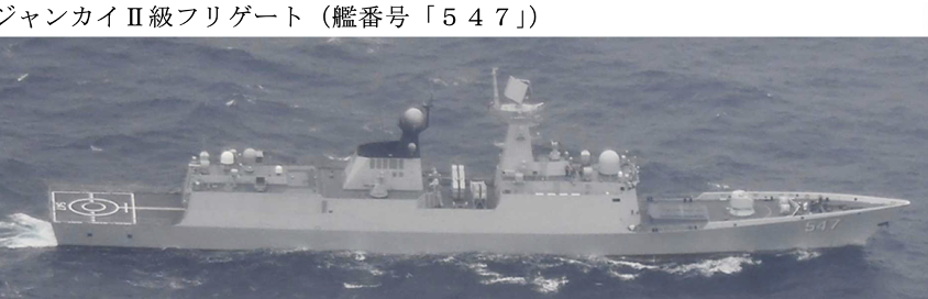 図6:(統合幕僚監部)ジャンカイ(江凱) II級フリゲート(054型)は、満載排水量4,000 ton、全長134 m、32セルVLSに対空・対潜ミサイルを搭載する。同型は40隻ほどが就役。
