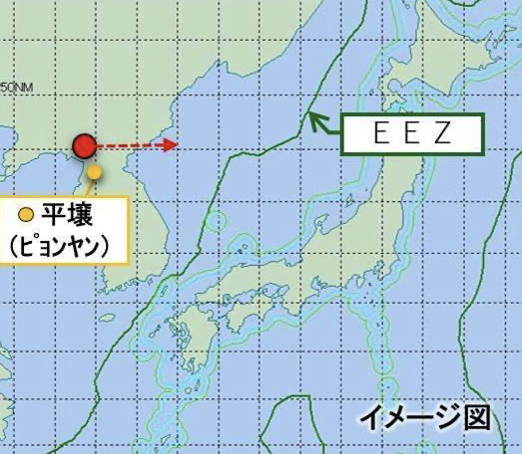図3:(防衛省)10月7日北朝鮮が発射した弾道ミサイルの航跡。