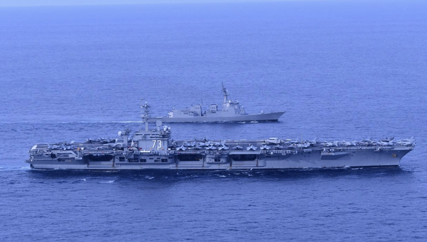 11月2日〜同4日の間、四国南方太平洋から東シナ海にかけての海域で海自イージス艦(ミサイル駆逐艦)「はぐろ(DDG-180)」満載排水量10,250 tonは、横須賀基地を母港とする米第7艦隊空母打撃群「ジョージ・ワシントン (USS George Washington / CVN-73 )」満載排水量104,200 ton、ミサイル巡洋艦「ロバート・スモールズ (USS Robert Smalls / CG-62」満載排水量9,460ton、ミサイル駆逐艦「ミリウス (USS Milius / DDG-69)」満載排水量8,400 ton、などと共同訓練を実施した。