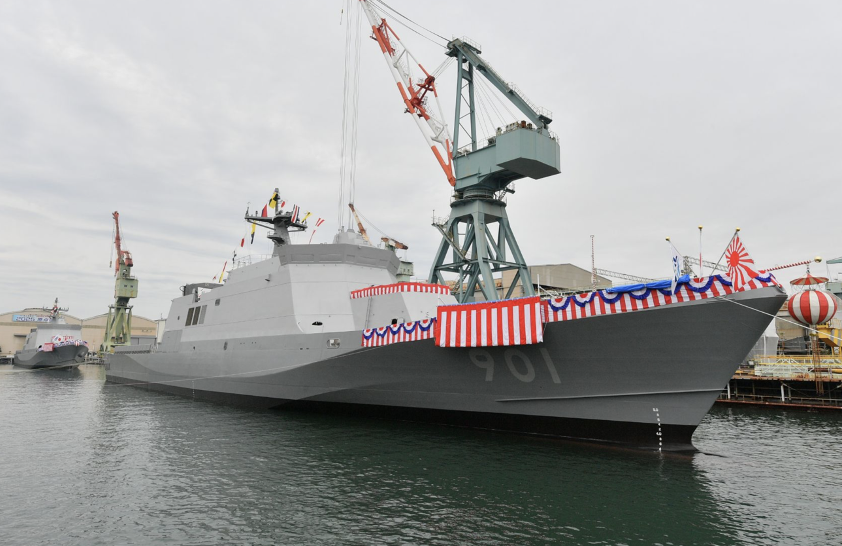 図20:(海上自衛隊)2025年11月13日挙行の進水式での1番艦「さくら/OPV-901」とその後方の2番艦「たちばな/OPV-902」。これから艤装が行われ、竣工予定は2027年初頭。続いて3番艦、4番艦の建造が始まっており進水式は2026年3月に予定。