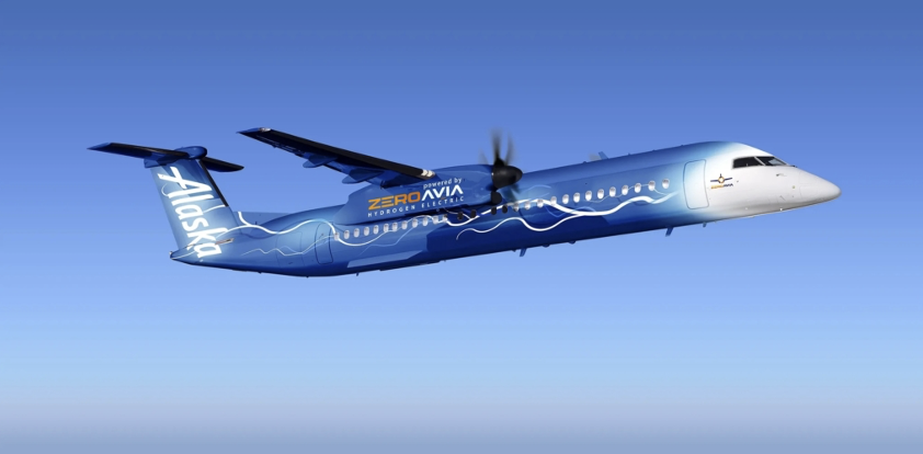 図12:(ZEROAVIA)ゼロアビアは、米国ワシントン州エベレットにあるペイン・フィールド (Paine Field, WA)工場で、アラスカ航空の「DHC Dash 8 Q400」リージョナル機の左翼エンジンに「ZA 2000」を取付け、取り付け具合の確認をしている。2027年に地上試験、タキシー・テストをして、飛行試験をする予定。アラスカ航空は同型機を50機運用中で、全機「ZA 2000」エンジンに換装する契約をゼロアビアと締結している。