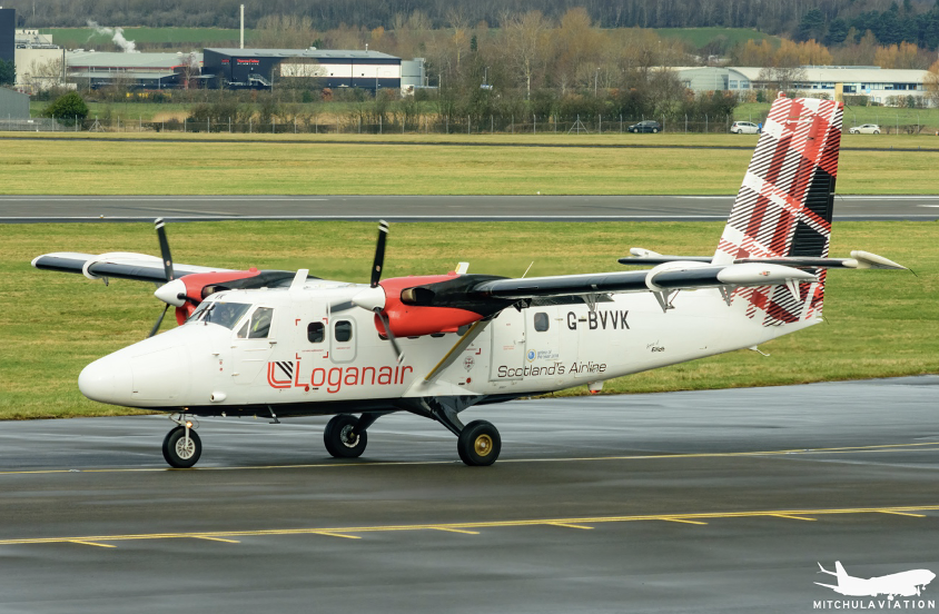図2:(Loganair)ローガン・エアのDe Havilland Canada DHC-6 Twin Otter機。DHC-6は900機ほど生産され世界各国で使われている。19人乗りで離陸重量5,670 kg、エンジンはP&WC PT6Aターボプロップ600~700馬力を2基。これを「ZA 600」に換装しようとしている。