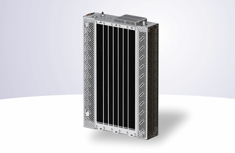 図8:(ZEROAVIA)自社開発の高温度PEM燃料電池スタック(Fuel Cell Stack)。比出力が高く、大型の「ZA2000」エンジンにも採用される。通常出力 20 KW、出力電圧は負荷によって変わるが80~120 Volt。高温度燃料電池の開発は、英国の専門企業「HiPoint」(40人)を買収し、ここで実施中。温度を200℃にすることでコントロールが容易になると言う。
