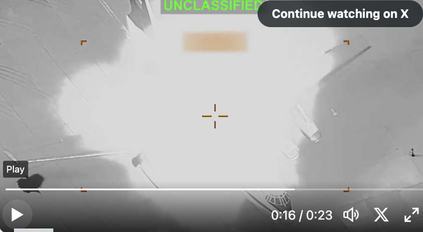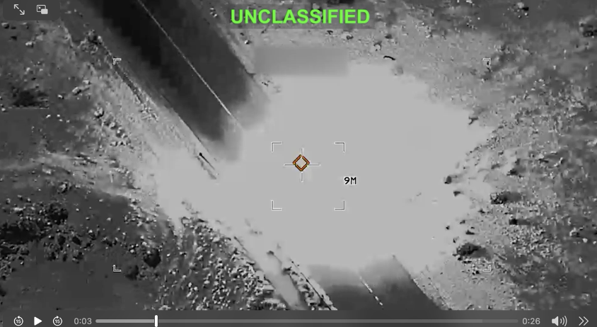 中央軍が発表したビデオには、MQ-9が装備するカメラが捉えたイラン軍の移動中のミサイルやドローンの発射車両、駐機中の航空機、などをMQ-9搭載のミサイル・爆弾が破壊巣る様子が写っている。