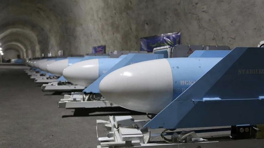 図12:(生き物ライター/2021年3月16日イラン国営テレビ放送) イランの地下ミサイル基地に収納されてる地対艦ミサイル。主翼を外した状態で多数並んでいる。