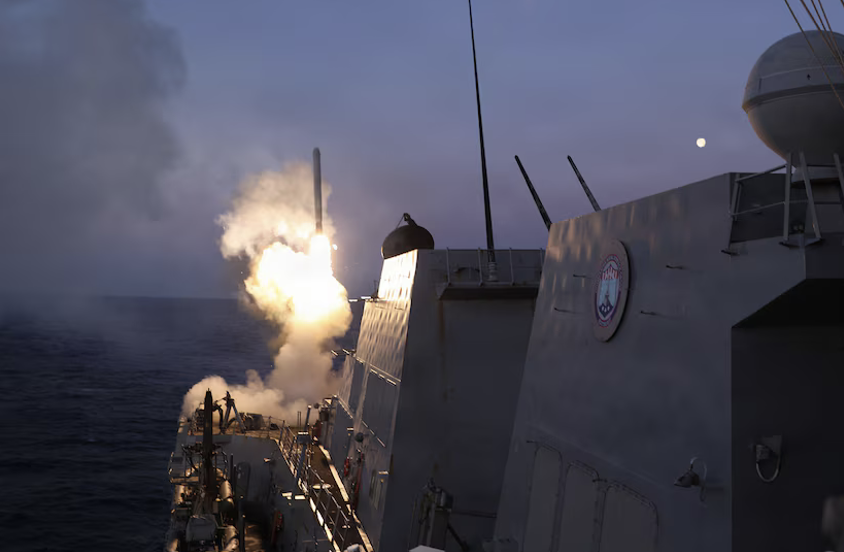 図10:(US Navy)3月5日、Epic Fury作戦でミサイル駆逐艦「トーマス・ハドナー(USS Thomas Hudner)」がトマホーク対地攻撃ミサイルを発射したところ。