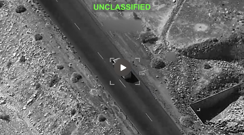 図2:(US Central Command)画面中央に走行中の大型トラック、図3に示す3秒後にミサイルで破壊された。